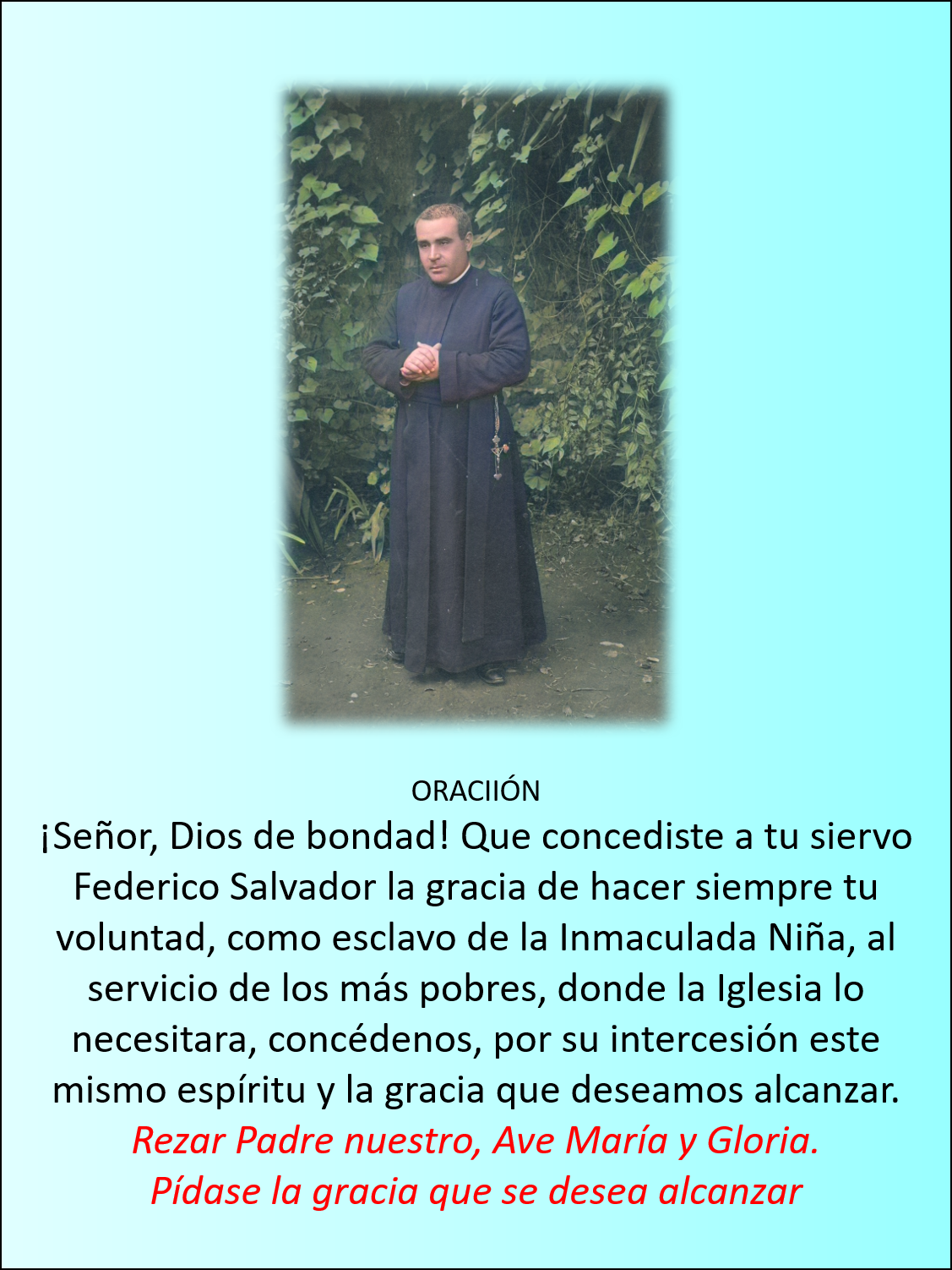 - Oración para pedir un favor por intercesión del P. Federico